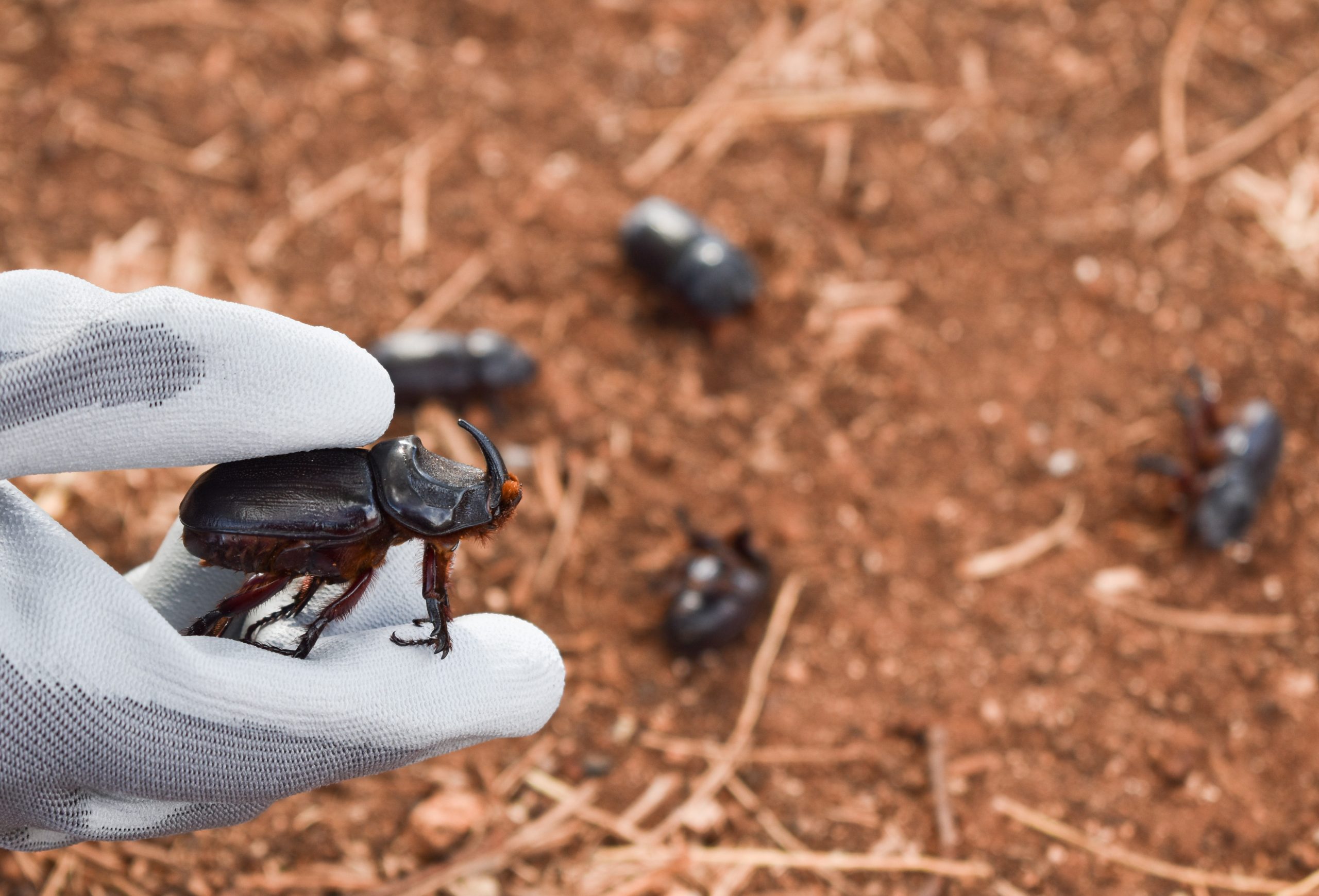 –Inspect potential CRB breeding sites regularly. CRB like to breed in decomposing material, such as mulch, compost, stumps and logs, dead trees, green waste piles, potting mix, and bagged soil. Larvae can burrow deep, so residents will need to dig through and sift material.